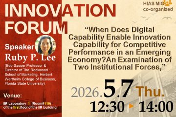 Date:May 7(Thursday), 2026from 12:30 to 14:00 Topic:“When Does Digital Capability Enable Innovation Capability for Competitive Performance in an Emerging Economy? An Examination of Two Institutional Forces,” Speaker:Ruby P. Lee(Bob Sasser Professor & Director of The Rockwood School of Marketing, Herbert Wertheim College of Business, Florida State University) Speaker Bio:Dr. Ruby (Pui Wan) Lee is the Bob Sasser Professor of Marketing and director of the Dr. Persis E. Rockwood School of Marketing at Florida State University’s Herbert Wertheim College of Business. She also serves as Director of Global Initiatives, managing global student exchanges, faculty-led study abroad programs, and the creation of international non-degree-seeking student programs.Over the past 10 years of her…